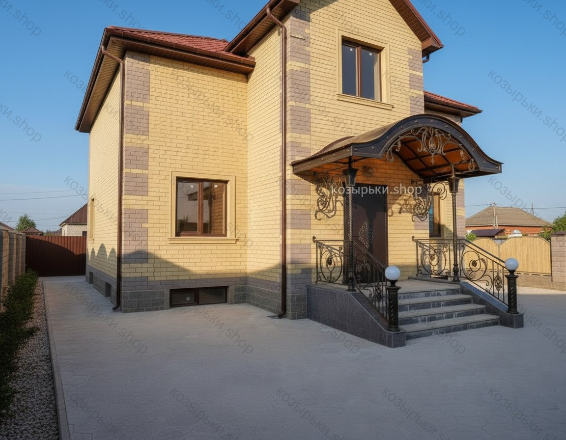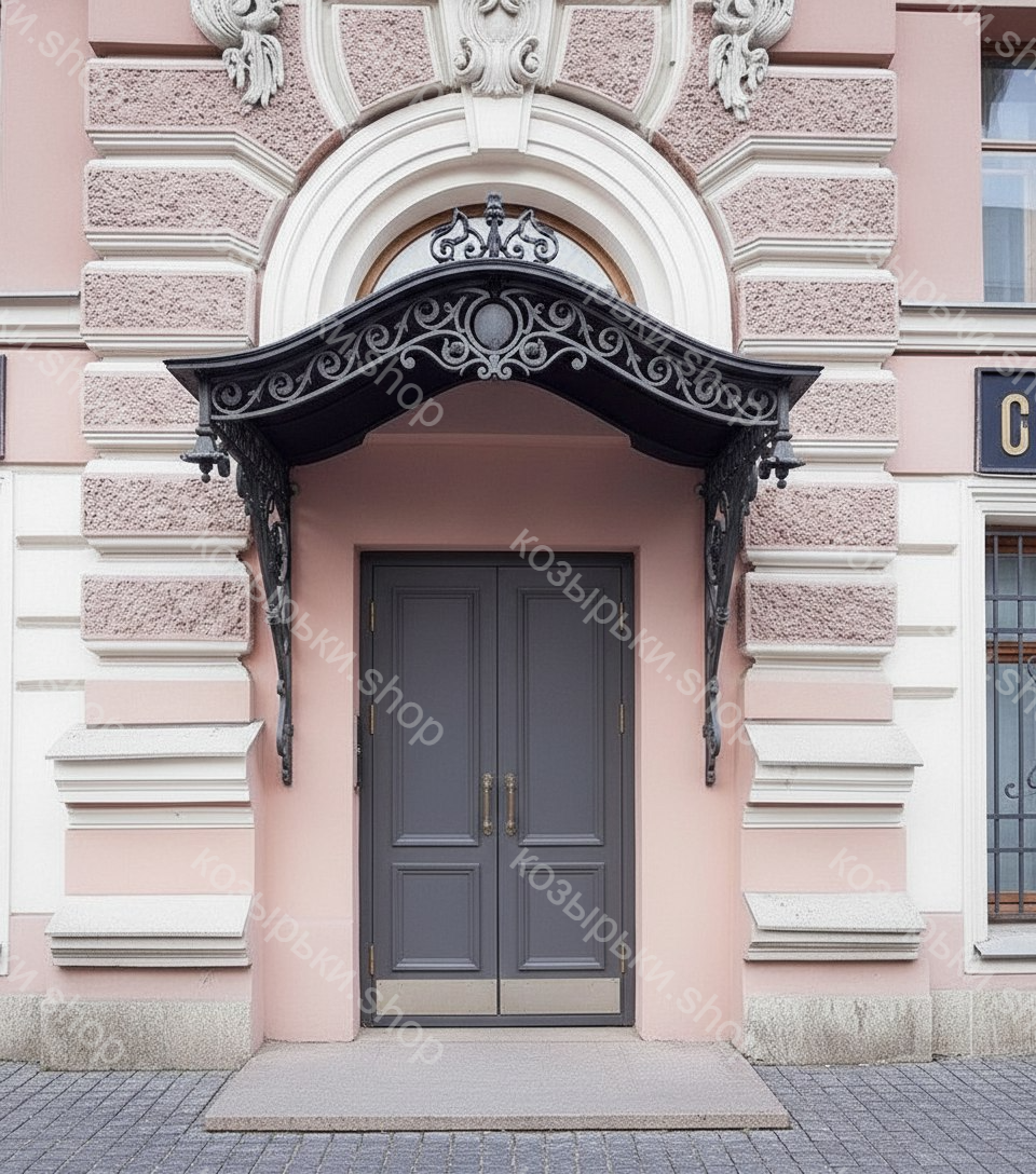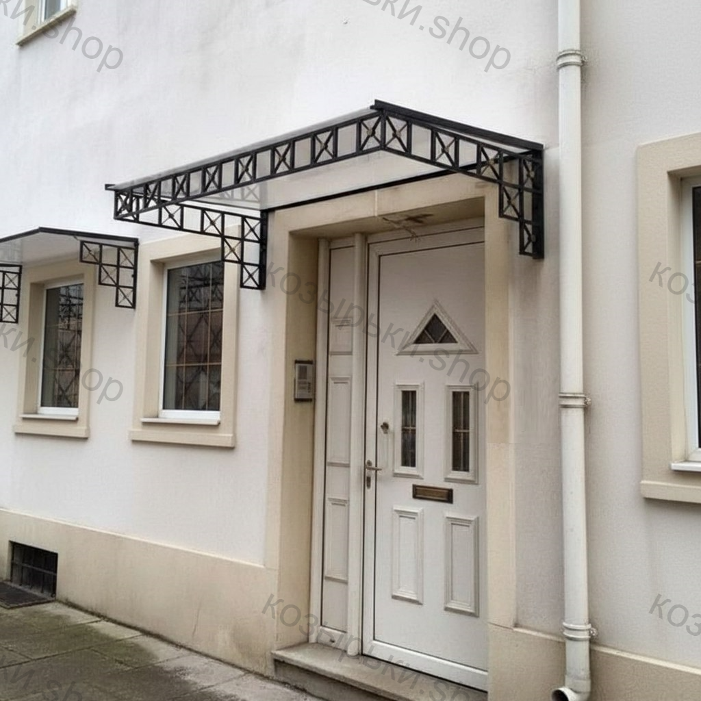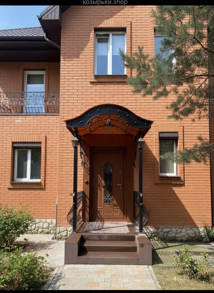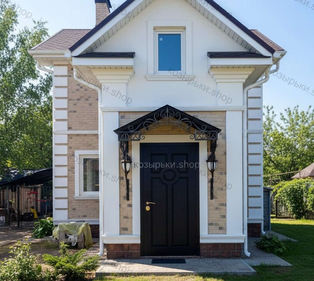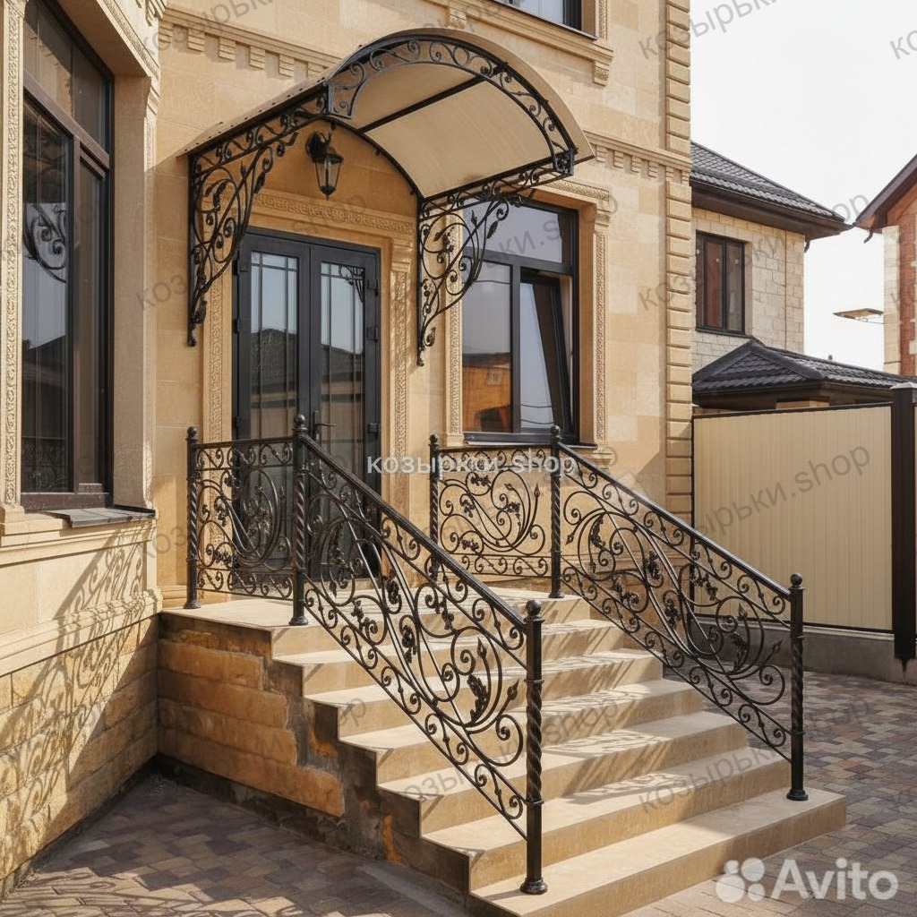Кованый козырёк от козырьки.Shop — это не просто функциональный элемент защиты, а настоящее украшение фасада вашего дома, магазина или офиса. Почему стоит выбрать именно кованый козырёк? Козырёк надёжно укроет входную зону от дождя, снега и палящего солнца. Вы сможете спокойно открыть дверь, достать ключи или встретить гостей, не боясь непогоды. -Изделия изготавливаются из высококачественного металла с применением технологии художественной ковки. Специальная обработка (грунтовка и защитное покрытие) предотвращает коррозию и гарантирует многолетнюю службу конструкции. -Кованые узоры придают козырьку изысканный, благородный вид. Элегантные изгибы и орнаменты превращают обычный навес в произведение искусства, подчёркивая статус и индивидуальность владельца. -Козырёк гармонично сочетается с другими коваными элементами: перилами, лестницами, воротами, заборами. Он впишется в любой архитектурный стиль — от классики до модерна. -Мы предлагаем как готовые решения из каталога, так и изготовление козырька по персональному эскизу. Вы можете выбрать форму, размер и узор, которые идеально подойдут к вашему фасаду. Варианты исполнения: односкатные — лаконичные и практичные; арочные — изящные и популярные; волнообразные — с оригинальным изгибом; прямые — максимально устойчивые; шаровидные — эффектные «зонтики». Материалы на выбор: металлические листы (прочность и надёжность); монолитный или сотовый поликарбонат (лёгкость и светопропускание). Преимущества заказа у нас: профессиональный дизайн‑проект с учётом особенностей вашего здания; качественное изготовление с соблюдением всех технологических норм; аккуратная покраска в выбранный вами цвет; оперативная установка опытными мастерами. Преобразите входную зону с кованым козырьком от козырьки.Shop — сочетайте практичность с эстетикой, создавая неповторимый облик вашего здания!