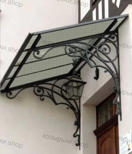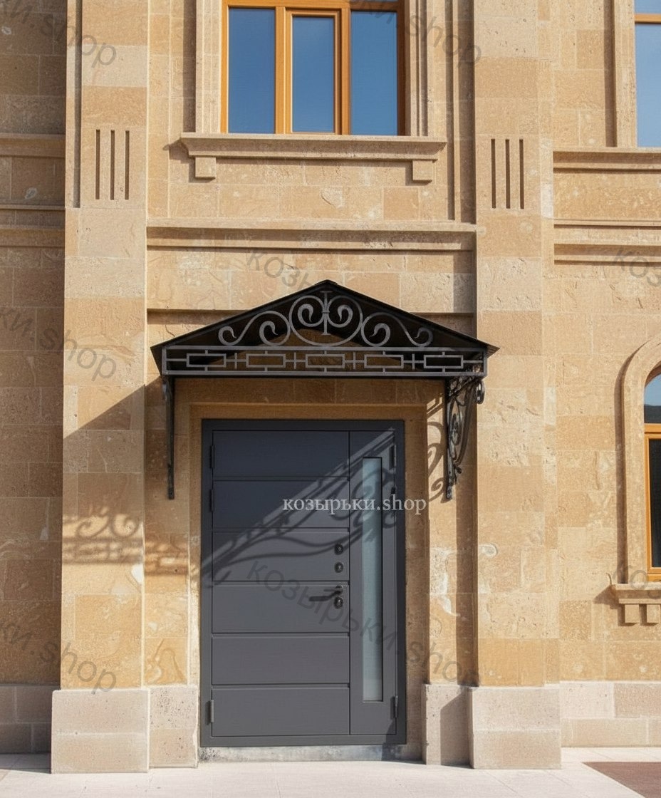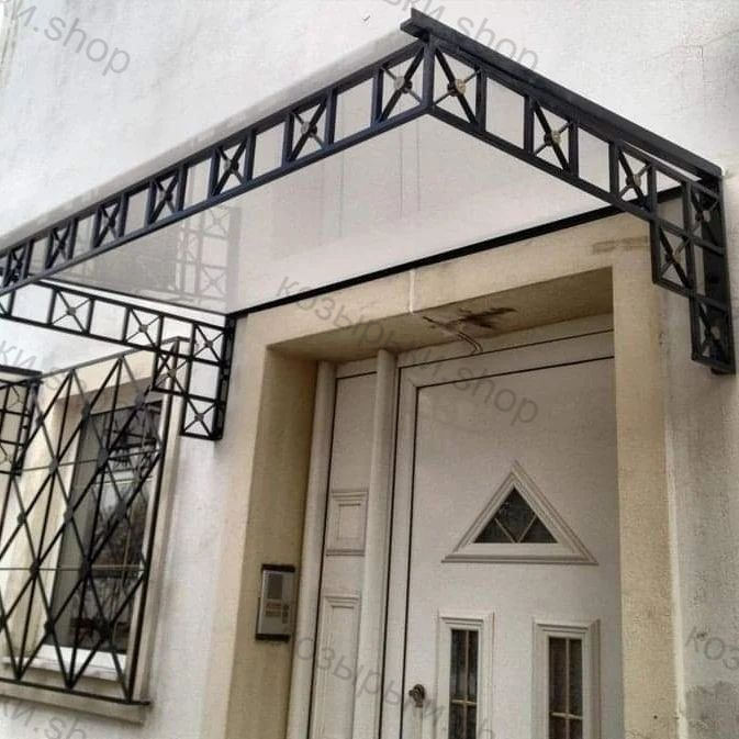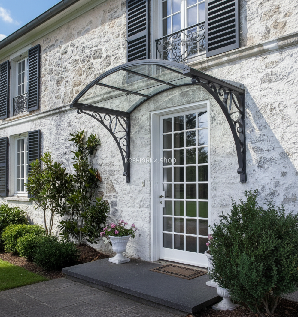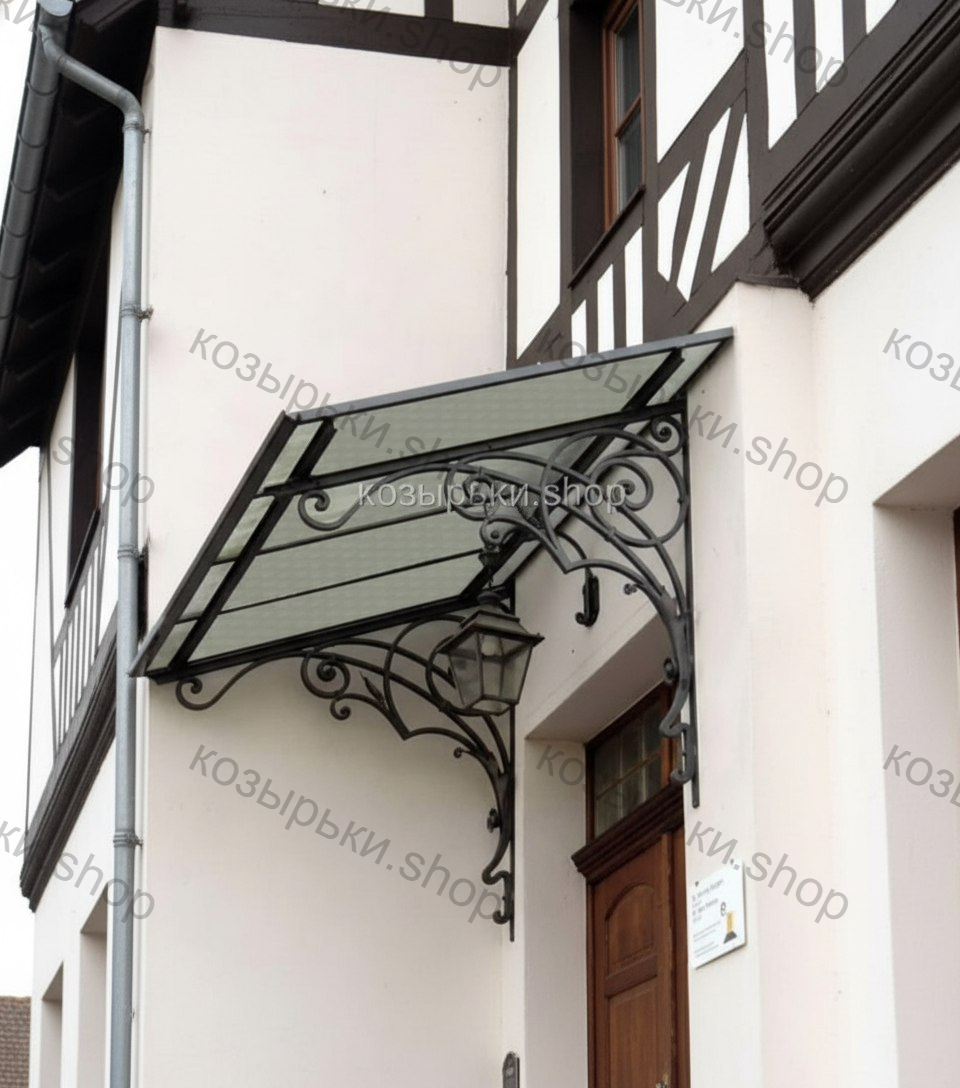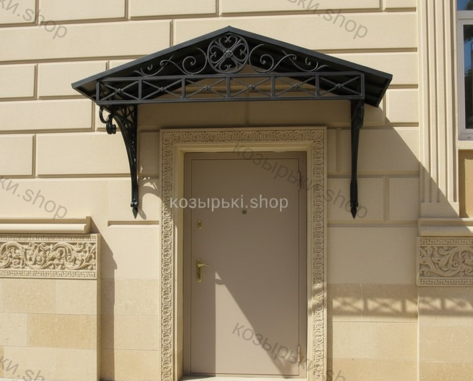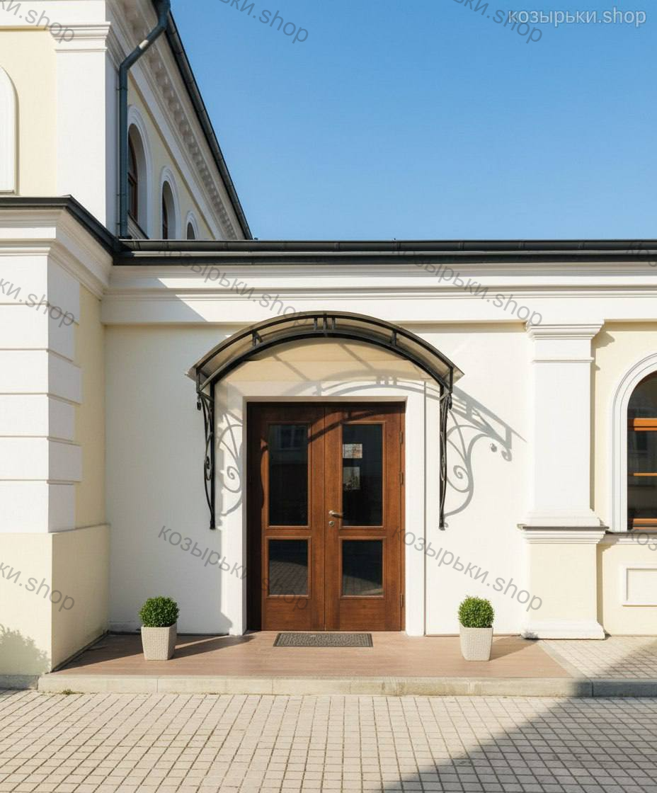 Кованый козырёк от козырьки.Shop — это не просто функциональный элемент защиты, а настоящее украшение фасада вашего дома, магазина или офиса. Почему стоит выбрать именно кованый козырёк? Козырёк надёжно укроет входную зону от дождя, снега и палящего солнца. Вы сможете спокойно открыть дверь, достать ключи или встретить гостей, не боясь непогоды. -Изделия изготавливаются из высококачественного металла с применением технологии художественной ковки. Специальная обработка (грунтовка и защитное покрытие) предотвращает коррозию и гарантирует многолетнюю службу конструкции. -Кованые узоры придают козырьку изысканный, благородный вид. Элегантные изгибы и орнаменты превращают обычный навес в произведение искусства, подчёркивая статус и индивидуальность владельца. -Козырёк гармонично сочетается с другими коваными элементами: перилами, лестницами, воротами, заборами. Он впишется в любой архитектурный стиль — от классики до модерна. -Мы предлагаем как готовые решения из каталога, так и изготовление козырька по персональному эскизу. Вы можете выбрать форму, размер и узор, которые идеально подойдут к вашему фасаду. Варианты исполнения: односкатные — лаконичные и практичные; арочные — изящные и популярные; волнообразные — с оригинальным изгибом; прямые — максимально устойчивые; шаровидные — эффектные «зонтики». Материалы на выбор: металлические листы (прочность и надёжность); монолитный или сотовый поликарбонат (лёгкость и светопропускание). Преимущества заказа у нас: профессиональный дизайн‑проект с учётом особенностей вашего здания; качественное изготовление с соблюдением всех технологических норм; аккуратная покраска в выбранный вами цвет; оперативная установка опытными мастерами. Преобразите входную зону с кованым козырьком от козырьки.Shop — сочетайте практичность с эстетикой, создавая неповторимый облик вашего здания!