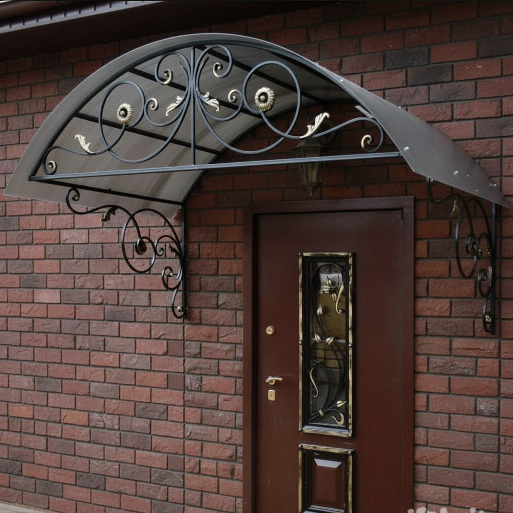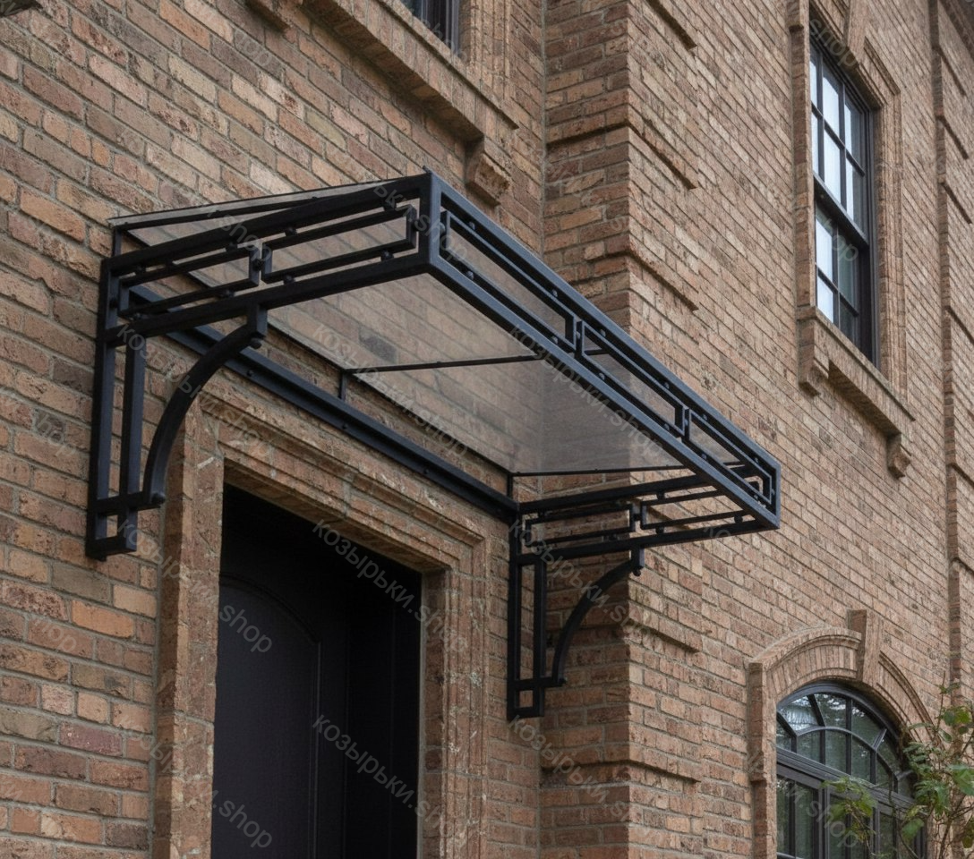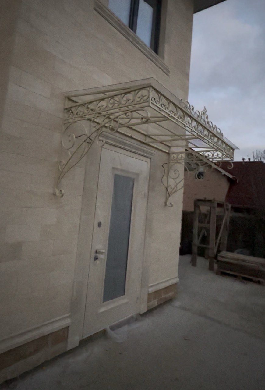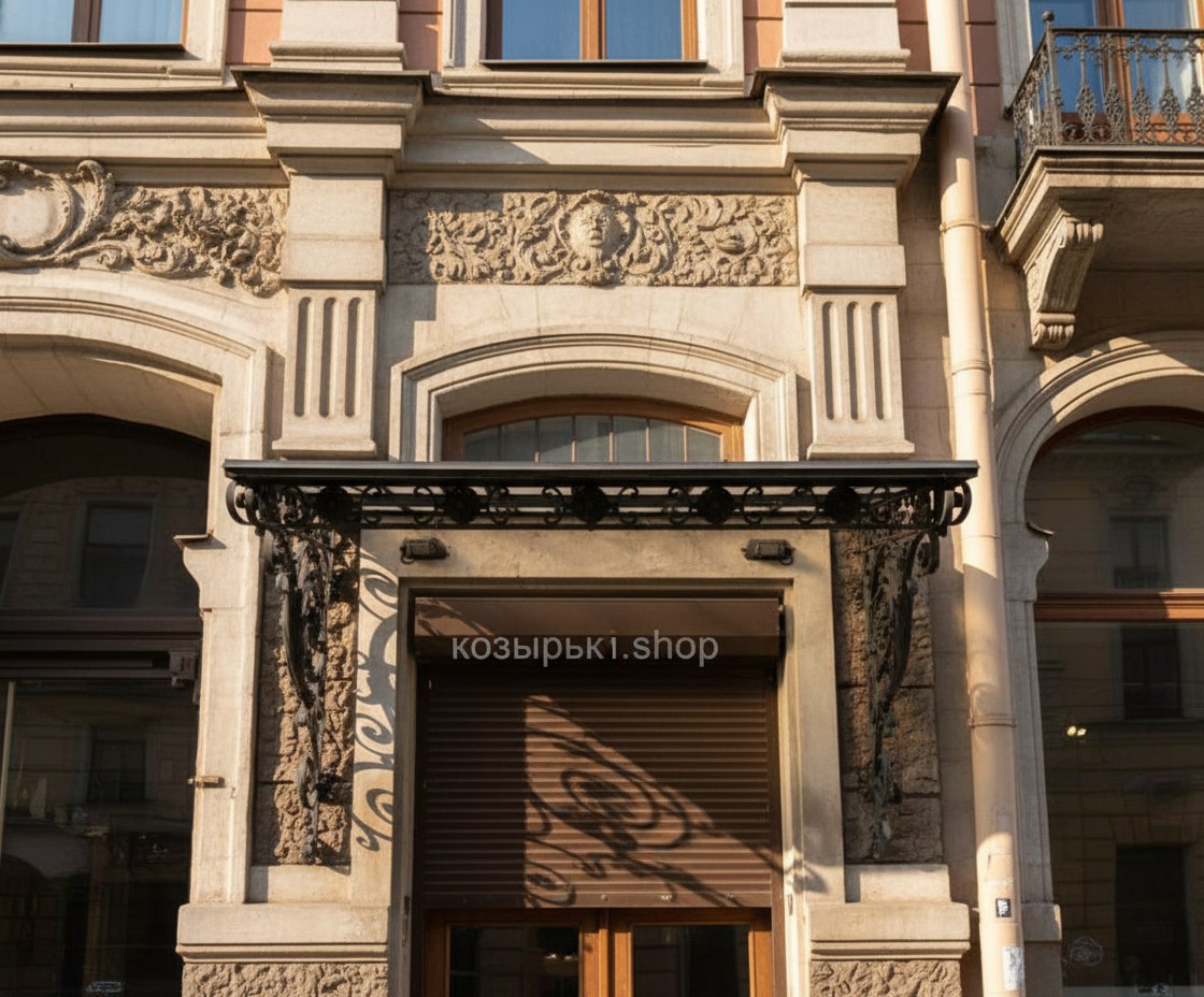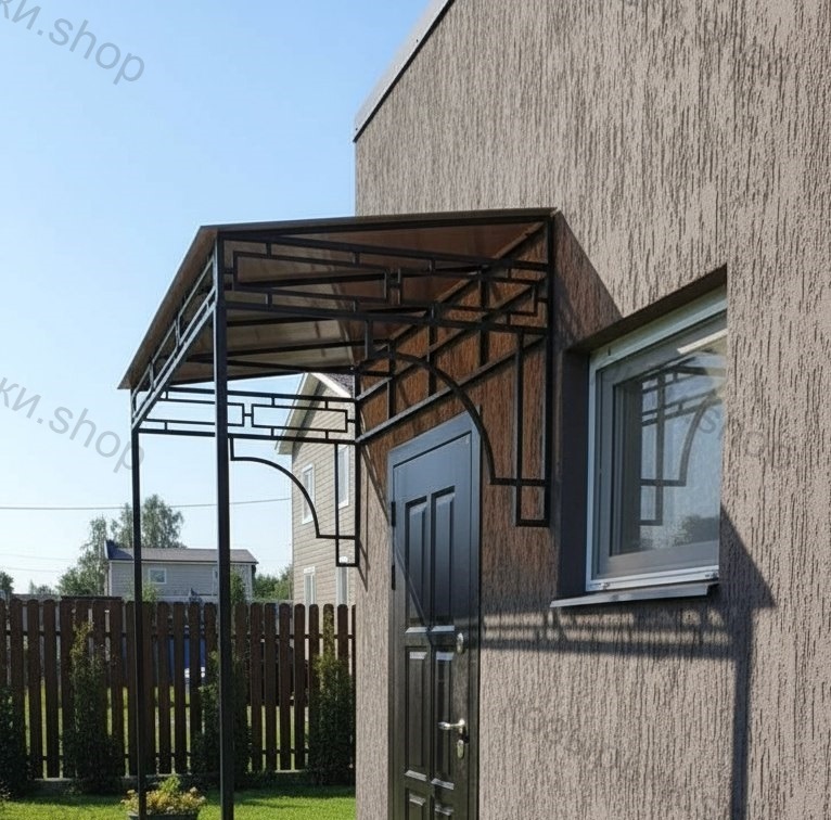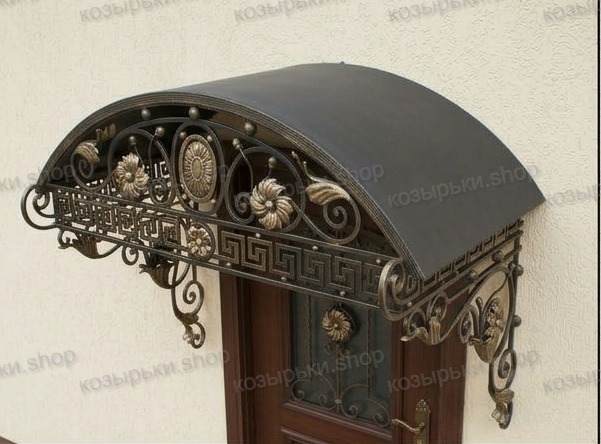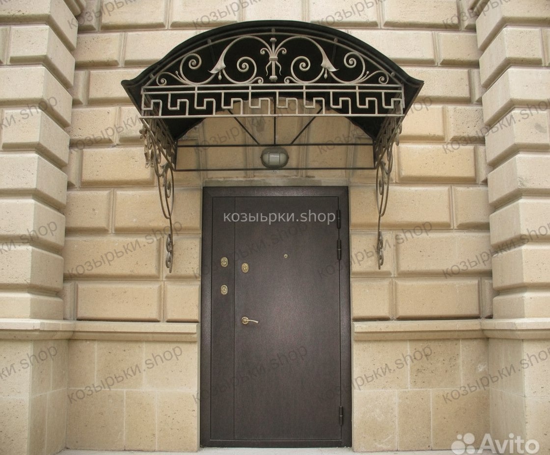 Кованый козырёк от козырьки.Shop — это не просто функциональный элемент защиты, а настоящее украшение фасада вашего дома, магазина или офиса. Почему стоит выбрать именно кованый козырёк? Козырёк надёжно укроет входную зону от дождя, снега и палящего солнца. Вы сможете спокойно открыть дверь, достать ключи или встретить гостей, не боясь непогоды. -Изделия изготавливаются из высококачественного металла с применением технологии художественной ковки. Специальная обработка (грунтовка и защитное покрытие) предотвращает коррозию и гарантирует многолетнюю службу конструкции. -Кованые узоры придают козырьку изысканный, благородный вид. Элегантные изгибы и орнаменты превращают обычный навес в произведение искусства, подчёркивая статус и индивидуальность владельца. -Козырёк гармонично сочетается с другими коваными элементами: перилами, лестницами, воротами, заборами. Он впишется в любой архитектурный стиль — от классики до модерна. -Мы предлагаем как готовые решения из каталога, так и изготовление козырька по персональному эскизу. Вы можете выбрать форму, размер и узор, которые идеально подойдут к вашему фасаду. Варианты исполнения: односкатные — лаконичные и практичные; арочные — изящные и популярные; волнообразные — с оригинальным изгибом; прямые — максимально устойчивые; шаровидные — эффектные «зонтики». Материалы на выбор: металлические листы (прочность и надёжность); монолитный или сотовый поликарбонат (лёгкость и светопропускание). Преимущества заказа у нас: профессиональный дизайн‑проект с учётом особенностей вашего здания; качественное изготовление с соблюдением всех технологических норм; аккуратная покраска в выбранный вами цвет; оперативная установка опытными мастерами. Преобразите входную зону с кованым козырьком от козырьки.Shop — сочетайте практичность с эстетикой, создавая неповторимый облик вашего здания!