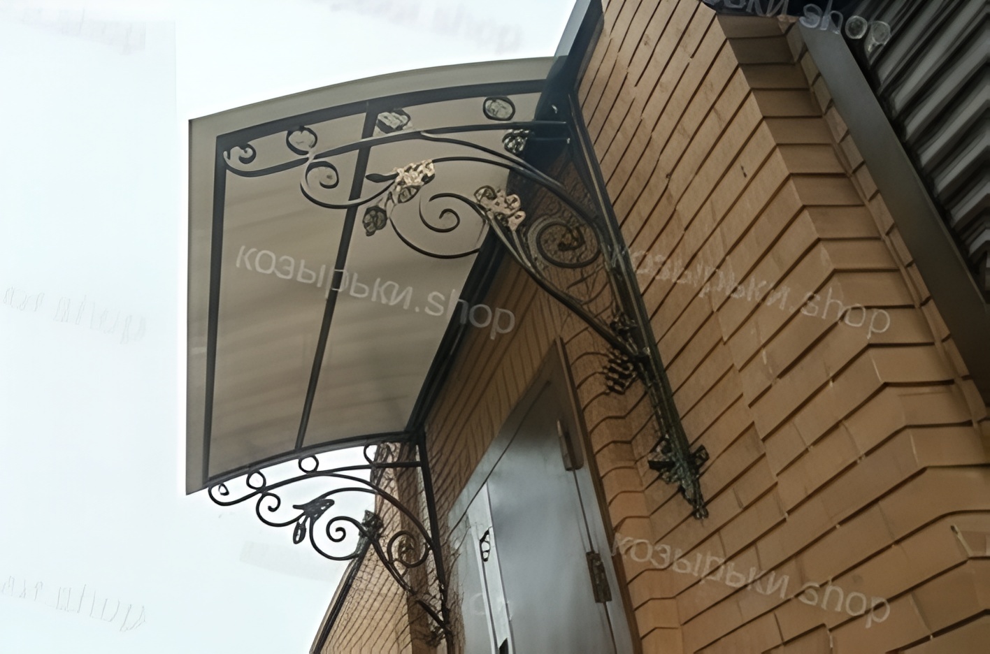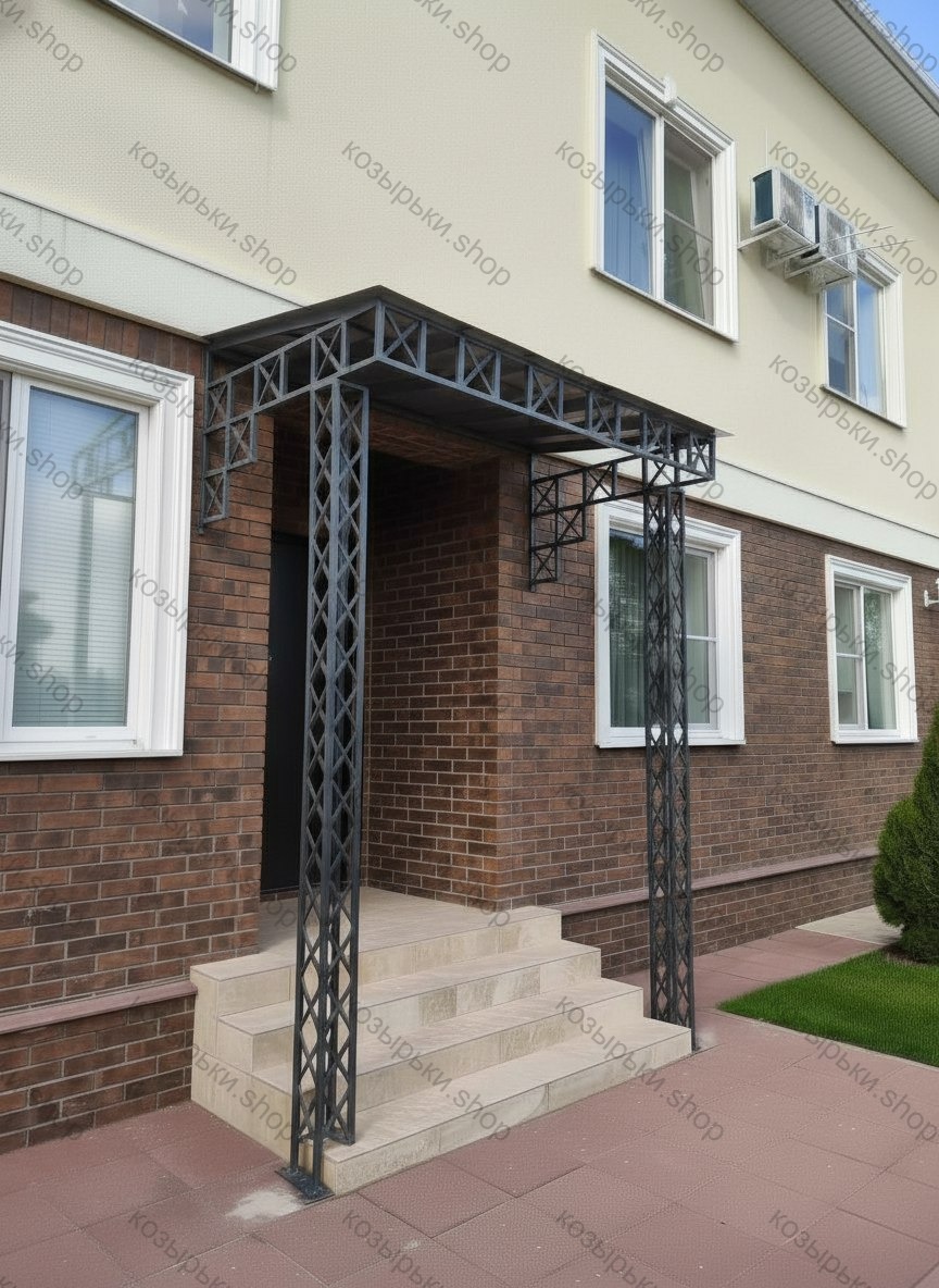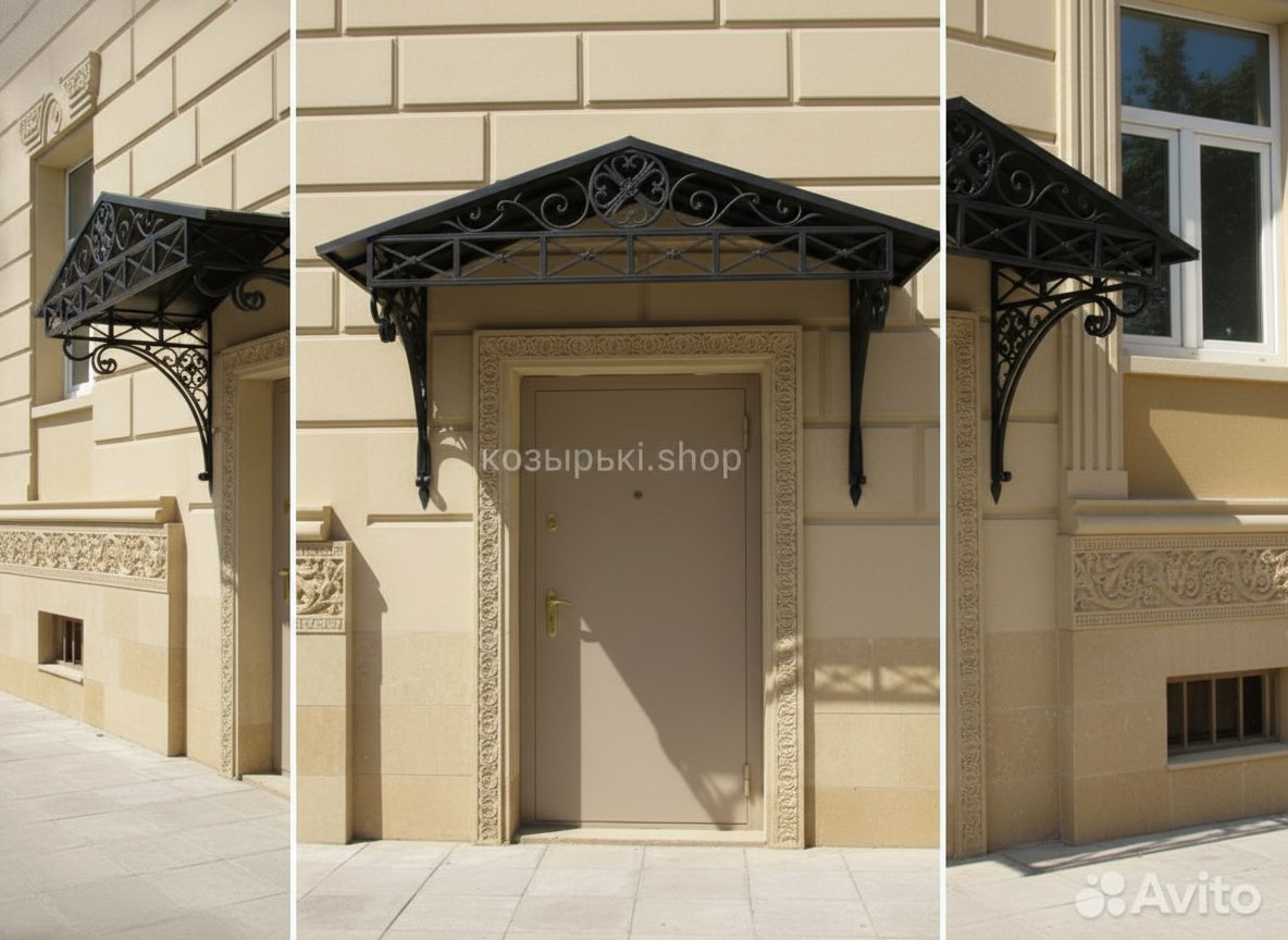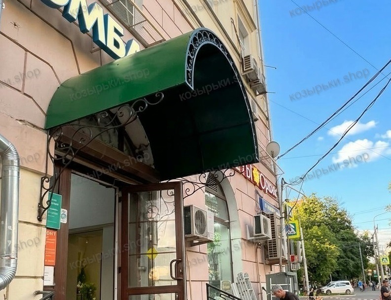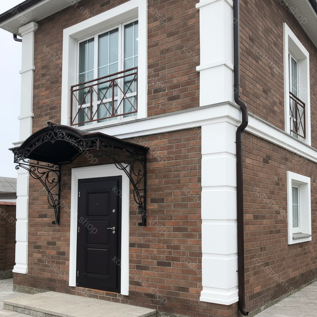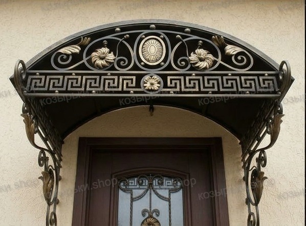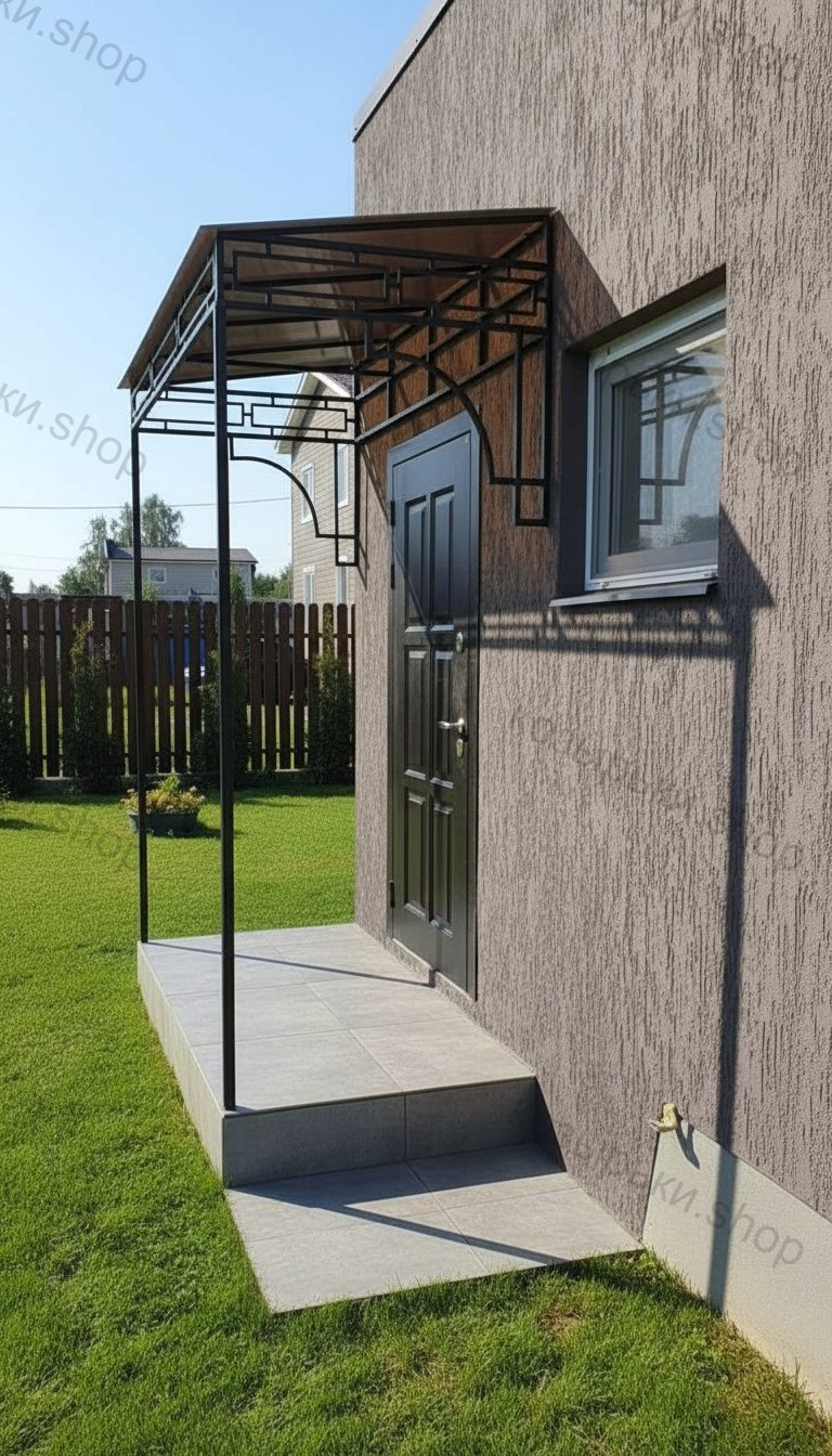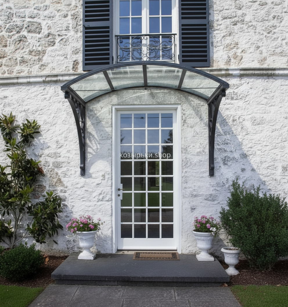 Кованый козырёк от козырьки.Shop — это не просто функциональный элемент защиты, а настоящее украшение фасада вашего дома, магазина или офиса. Почему стоит выбрать именно кованый козырёк? Козырёк надёжно укроет входную зону от дождя, снега и палящего солнца. Вы сможете спокойно открыть дверь, достать ключи или встретить гостей, не боясь непогоды. -Изделия изготавливаются из высококачественного металла с применением технологии художественной ковки. Специальная обработка (грунтовка и защитное покрытие) предотвращает коррозию и гарантирует многолетнюю службу конструкции. -Кованые узоры придают козырьку изысканный, благородный вид. Элегантные изгибы и орнаменты превращают обычный навес в произведение искусства, подчёркивая статус и индивидуальность владельца. -Козырёк гармонично сочетается с другими коваными элементами: перилами, лестницами, воротами, заборами. Он впишется в любой архитектурный стиль — от классики до модерна. -Мы предлагаем как готовые решения из каталога, так и изготовление козырька по персональному эскизу. Вы можете выбрать форму, размер и узор, которые идеально подойдут к вашему фасаду. Варианты исполнения: односкатные — лаконичные и практичные; арочные — изящные и популярные; волнообразные — с оригинальным изгибом; прямые — максимально устойчивые; шаровидные — эффектные «зонтики». Материалы на выбор: металлические листы (прочность и надёжность); монолитный или сотовый поликарбонат (лёгкость и светопропускание). Преимущества заказа у нас: профессиональный дизайн‑проект с учётом особенностей вашего здания; качественное изготовление с соблюдением всех технологических норм; аккуратная покраска в выбранный вами цвет; оперативная установка опытными мастерами. Преобразите входную зону с кованым козырьком от козырьки.Shop — сочетайте практичность с эстетикой, создавая неповторимый облик вашего здания!