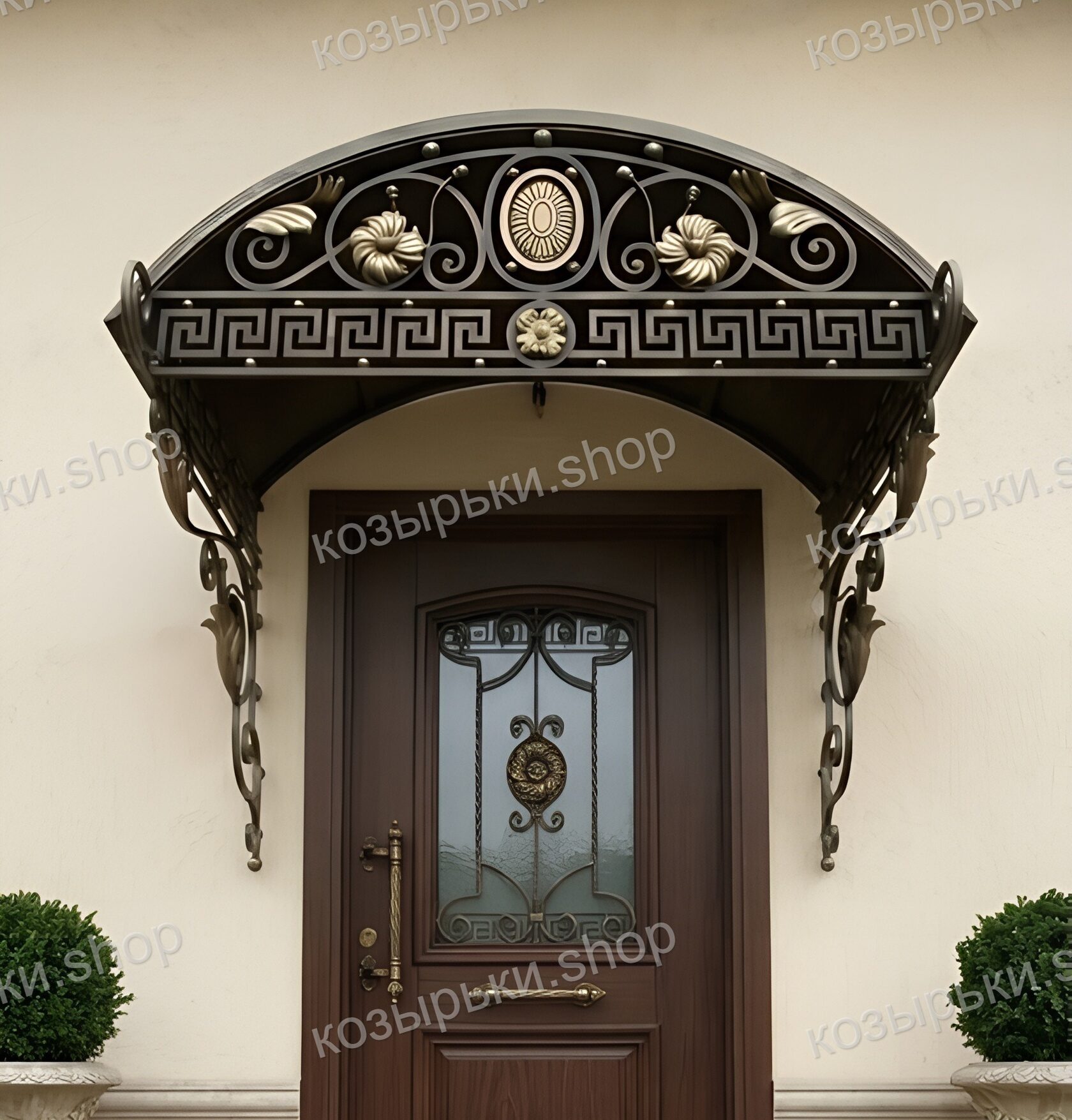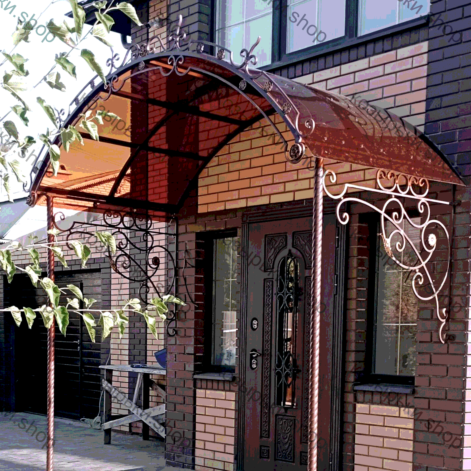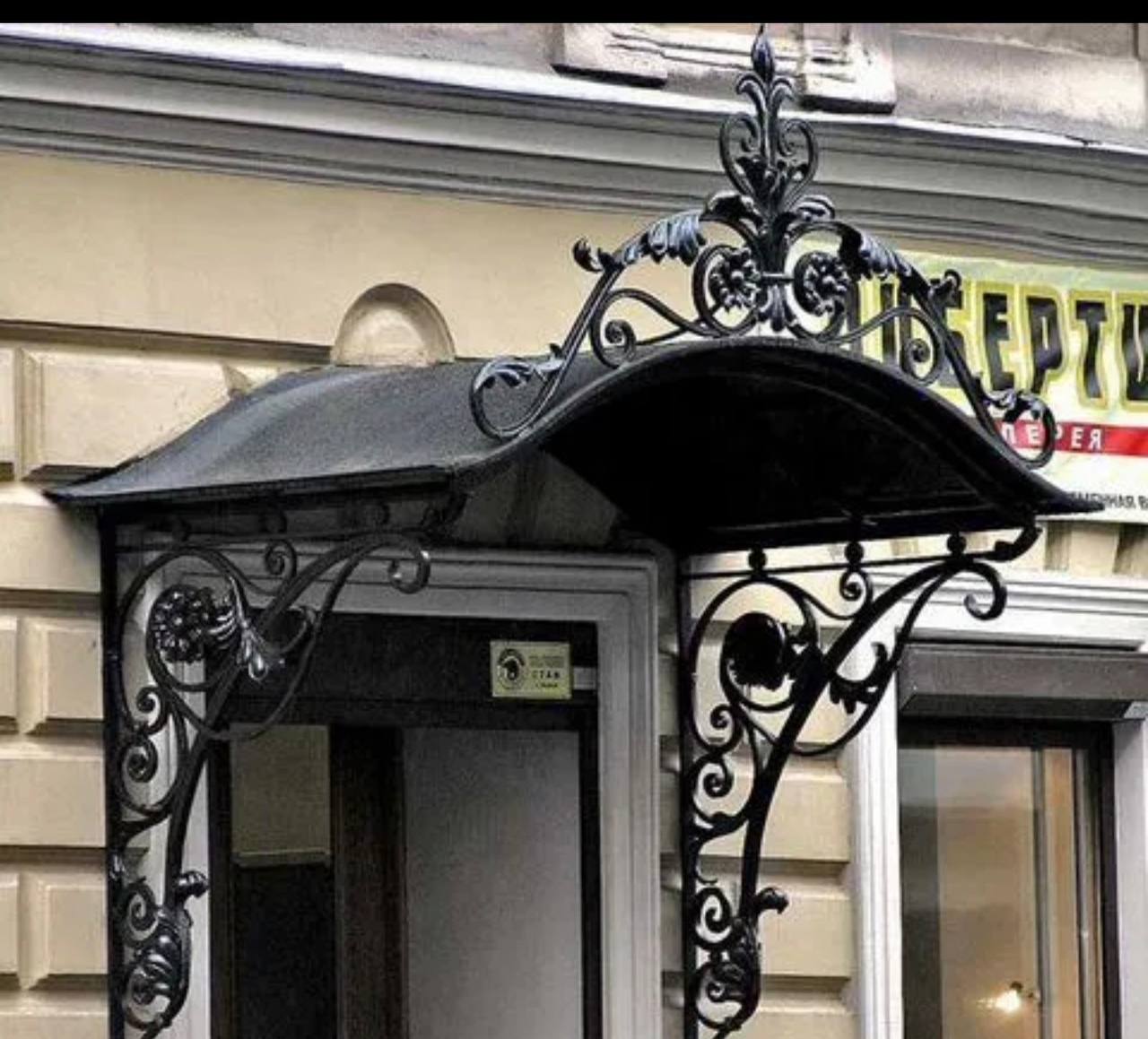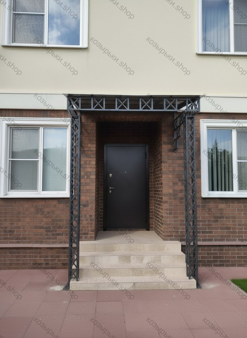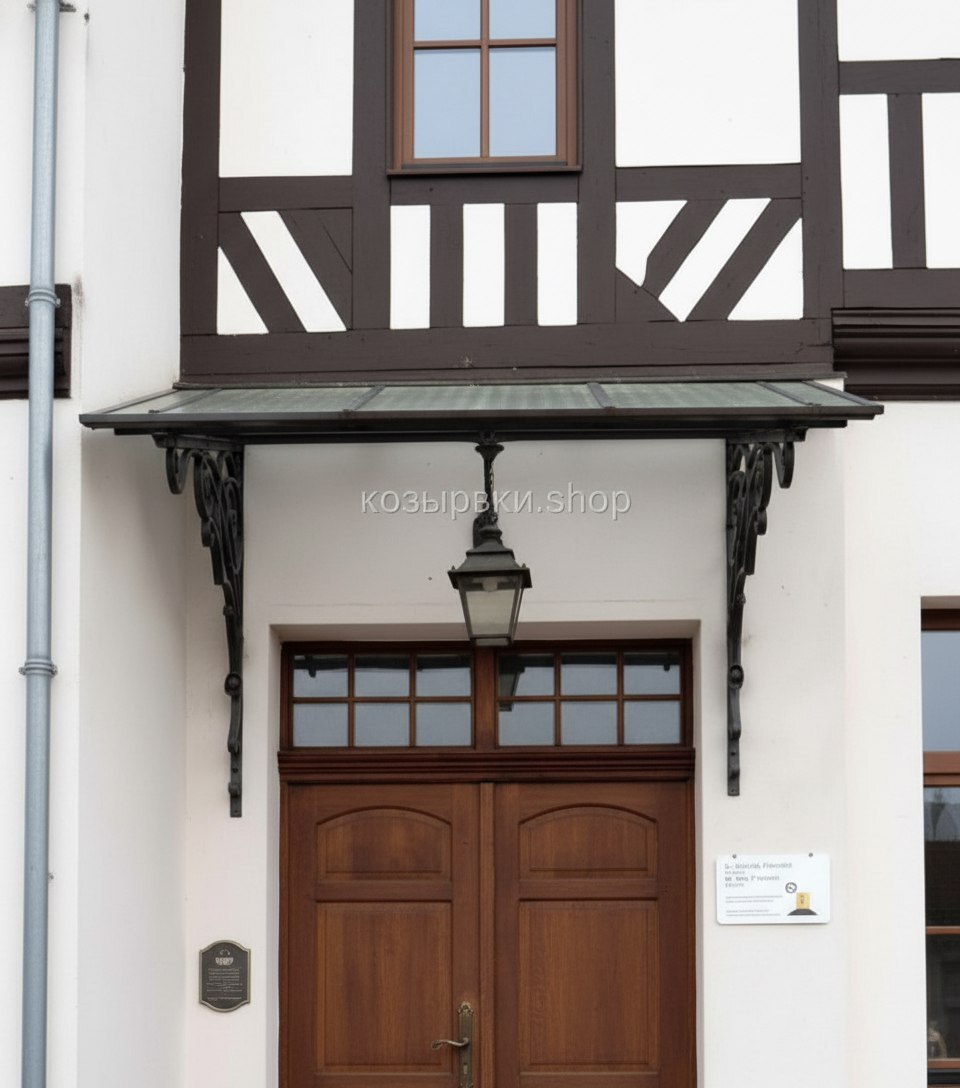 Кованый козырёк от козырьки.Shop — это не просто функциональный элемент защиты, а настоящее украшение фасада вашего дома, магазина или офиса. Почему стоит выбрать именно кованый козырёк? Козырёк надёжно укроет входную зону от дождя, снега и палящего солнца. Вы сможете спокойно открыть дверь, достать ключи или встретить гостей, не боясь непогоды. -Изделия изготавливаются из высококачественного металла с применением технологии художественной ковки. Специальная обработка (грунтовка и защитное покрытие) предотвращает коррозию и гарантирует многолетнюю службу конструкции. -Кованые узоры придают козырьку изысканный, благородный вид. Элегантные изгибы и орнаменты превращают обычный навес в произведение искусства, подчёркивая статус и индивидуальность владельца. -Козырёк гармонично сочетается с другими коваными элементами: перилами, лестницами, воротами, заборами. Он впишется в любой архитектурный стиль — от классики до модерна. -Мы предлагаем как готовые решения из каталога, так и изготовление козырька по персональному эскизу. Вы можете выбрать форму, размер и узор, которые идеально подойдут к вашему фасаду. Варианты исполнения: односкатные — лаконичные и практичные; арочные — изящные и популярные; волнообразные — с оригинальным изгибом; прямые — максимально устойчивые; шаровидные — эффектные «зонтики». Материалы на выбор: металлические листы (прочность и надёжность); монолитный или сотовый поликарбонат (лёгкость и светопропускание). Преимущества заказа у нас: профессиональный дизайн‑проект с учётом особенностей вашего здания; качественное изготовление с соблюдением всех технологических норм; аккуратная покраска в выбранный вами цвет; оперативная установка опытными мастерами. Преобразите входную зону с кованым козырьком от козырьки.Shop — сочетайте практичность с эстетикой, создавая неповторимый облик вашего здания!