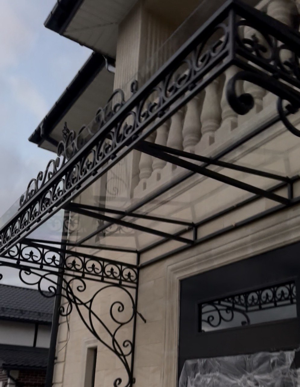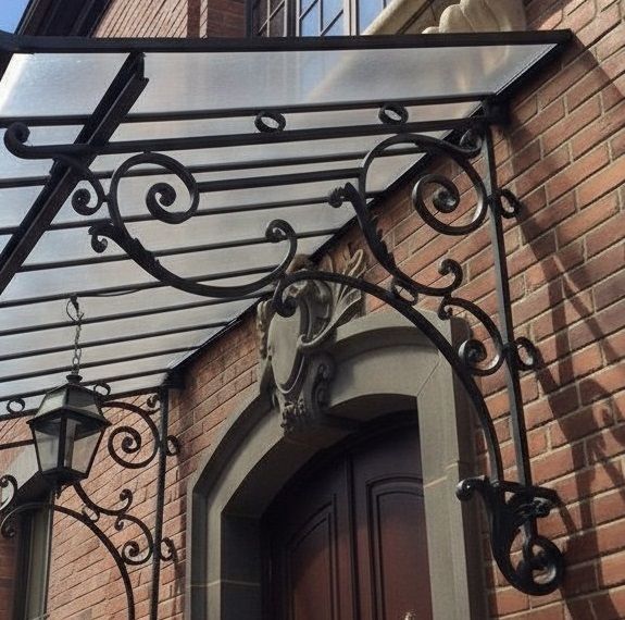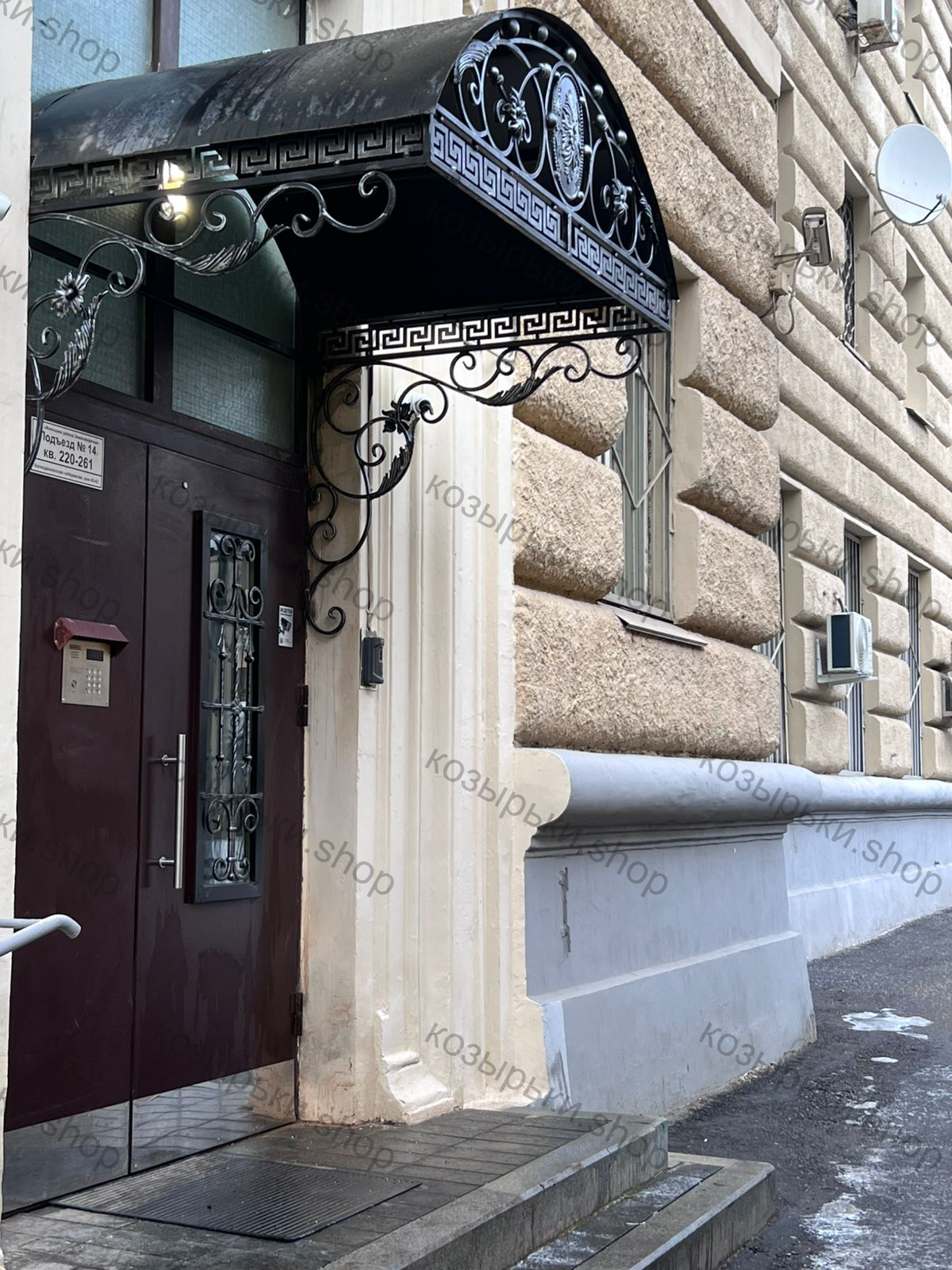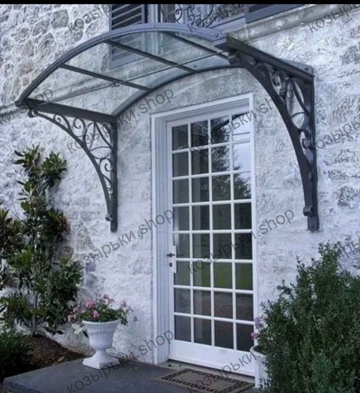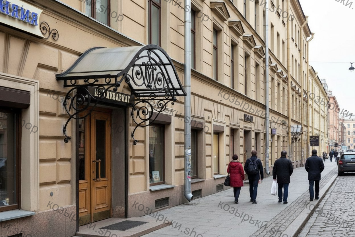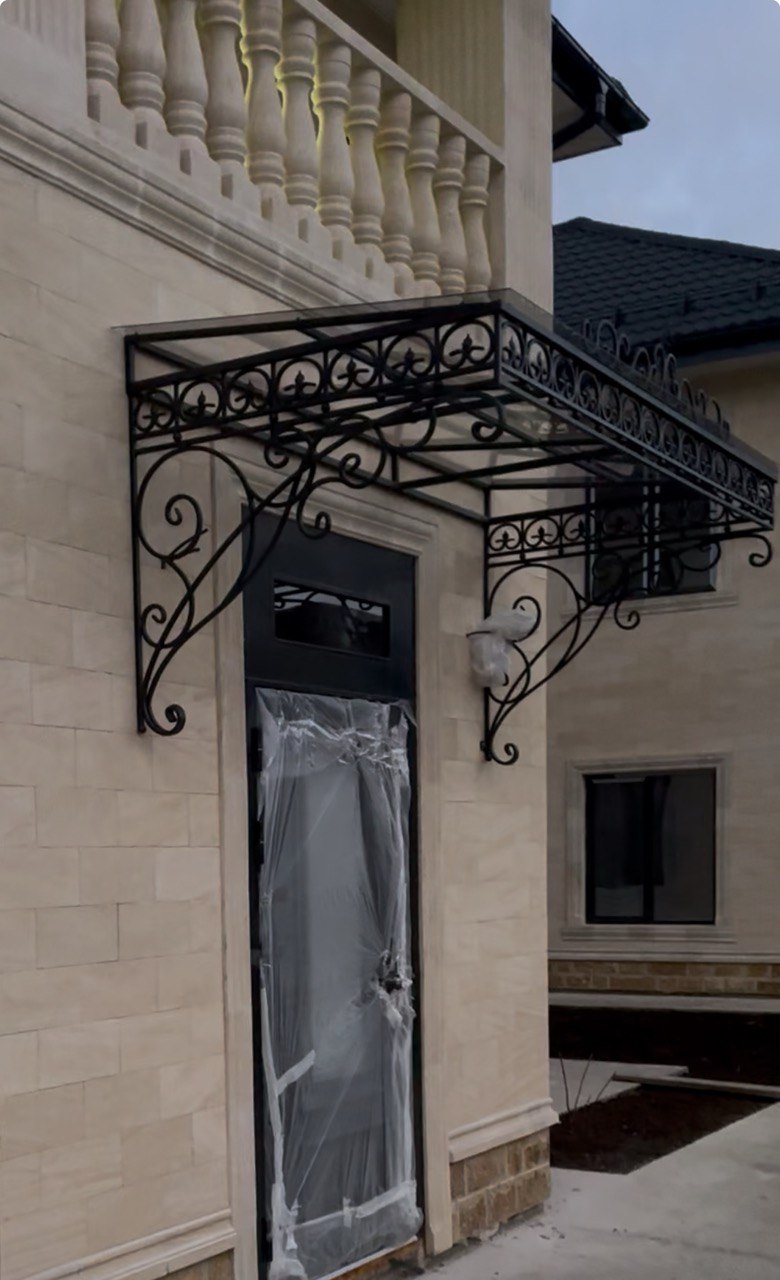 Кованый козырёк от козырьки.Shop — это не просто функциональный элемент защиты, а настоящее украшение фасада вашего дома, магазина или офиса. Почему стоит выбрать именно кованый козырёк? Козырёк надёжно укроет входную зону от дождя, снега и палящего солнца. Вы сможете спокойно открыть дверь, достать ключи или встретить гостей, не боясь непогоды. -Изделия изготавливаются из высококачественного металла с применением технологии художественной ковки. Специальная обработка (грунтовка и защитное покрытие) предотвращает коррозию и гарантирует многолетнюю службу конструкции. -Кованые узоры придают козырьку изысканный, благородный вид. Элегантные изгибы и орнаменты превращают обычный навес в произведение искусства, подчёркивая статус и индивидуальность владельца. -Козырёк гармонично сочетается с другими коваными элементами: перилами, лестницами, воротами, заборами. Он впишется в любой архитектурный стиль — от классики до модерна. -Мы предлагаем как готовые решения из каталога, так и изготовление козырька по персональному эскизу. Вы можете выбрать форму, размер и узор, которые идеально подойдут к вашему фасаду. Варианты исполнения: односкатные — лаконичные и практичные; арочные — изящные и популярные; волнообразные — с оригинальным изгибом; прямые — максимально устойчивые; шаровидные — эффектные «зонтики». Материалы на выбор: металлические листы (прочность и надёжность); монолитный или сотовый поликарбонат (лёгкость и светопропускание). Преимущества заказа у нас: профессиональный дизайн‑проект с учётом особенностей вашего здания; качественное изготовление с соблюдением всех технологических норм; аккуратная покраска в выбранный вами цвет; оперативная установка опытными мастерами. Преобразите входную зону с кованым козырьком от козырьки.Shop — сочетайте практичность с эстетикой, создавая неповторимый облик вашего здания!
