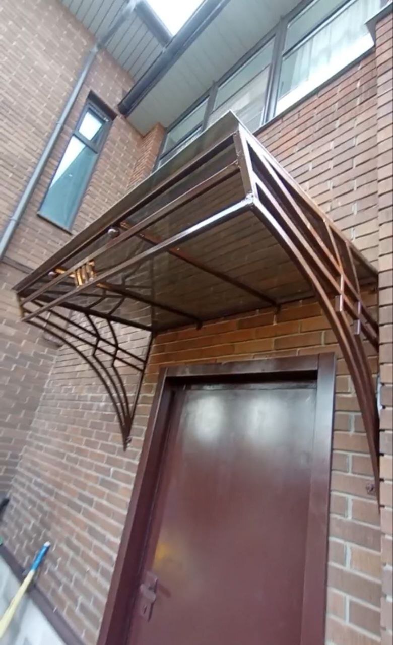Козырёк в стиле лофт— элегантная защита и стильное украшение вашего входа. Ищете способ эффектно оформить вход в дом, дачу или коммерческое помещение? Кованый козырёк от сайта КОЗЫРЬКИ.shop — идеальное решение! Это не просто функциональный элемент, защищающий от дождя, снега и солнца, но и изысканное украшение фасада, придающее зданию благородный, завершённый облик. Почему стоит выбрать наш козырёк? Прочность и долговечность. Каркас изготовлен из профильной металлической трубы , обработан антикоррозионным, суперпрочным, покрытием и окрашен качественным, долговечным 2К покрытием. Практичность. Крыша из сотового или монолитного поликарбоната пропускает свет, но защищает от осадков. Материал устойчив к ветровым нагрузкам и перепадам температур. Основные характеристики : форма: односкатная ширина: 2000мм (или под заказ) вылет (глубина):1000мм (или под заказ) цвет: чёрный (или под заказ); материал каркаса: металл; покрытие крыши: поликарбонат (или под заказ). защита двери и крыльца от атмосферных воздействий; увеличение срока службы входной группы; стильный дизайн, гармонирующий с любым фасадом; Подарите своему дому изысканный акцент — выберите кованый козырёк от КОЗЫРЬКИ.shop! гарантия 2 года. Сделаем дизайн на ваше крыльцо в Подарок! Тел 89172500555 #кованыекозырьки #металлическиекозырьки #защитаотдождя #архитектурныеэлементы #кованыеизделия #металлическиеконструкции #защитаотпогоды #козырькидлябизнеса #козырькидлядома