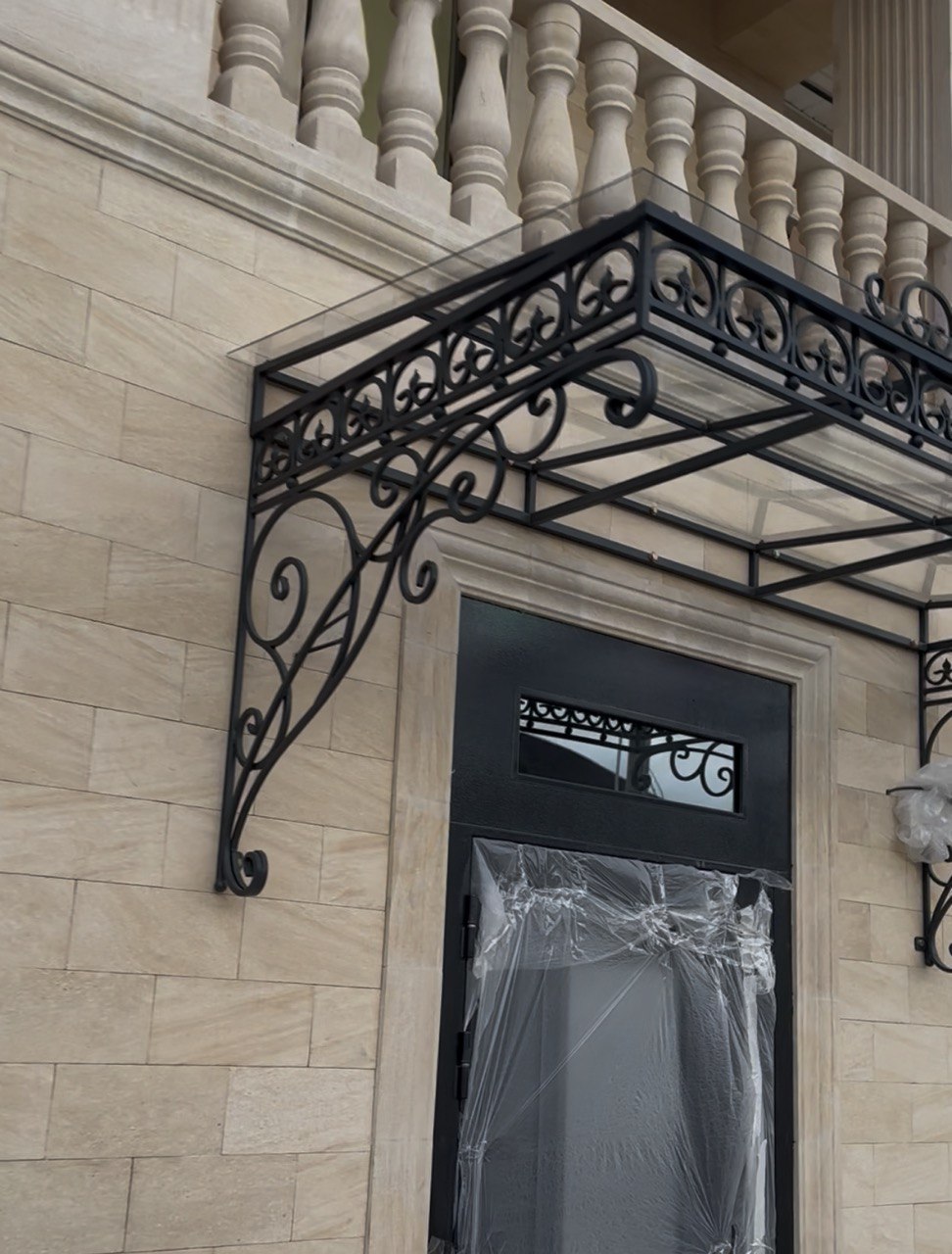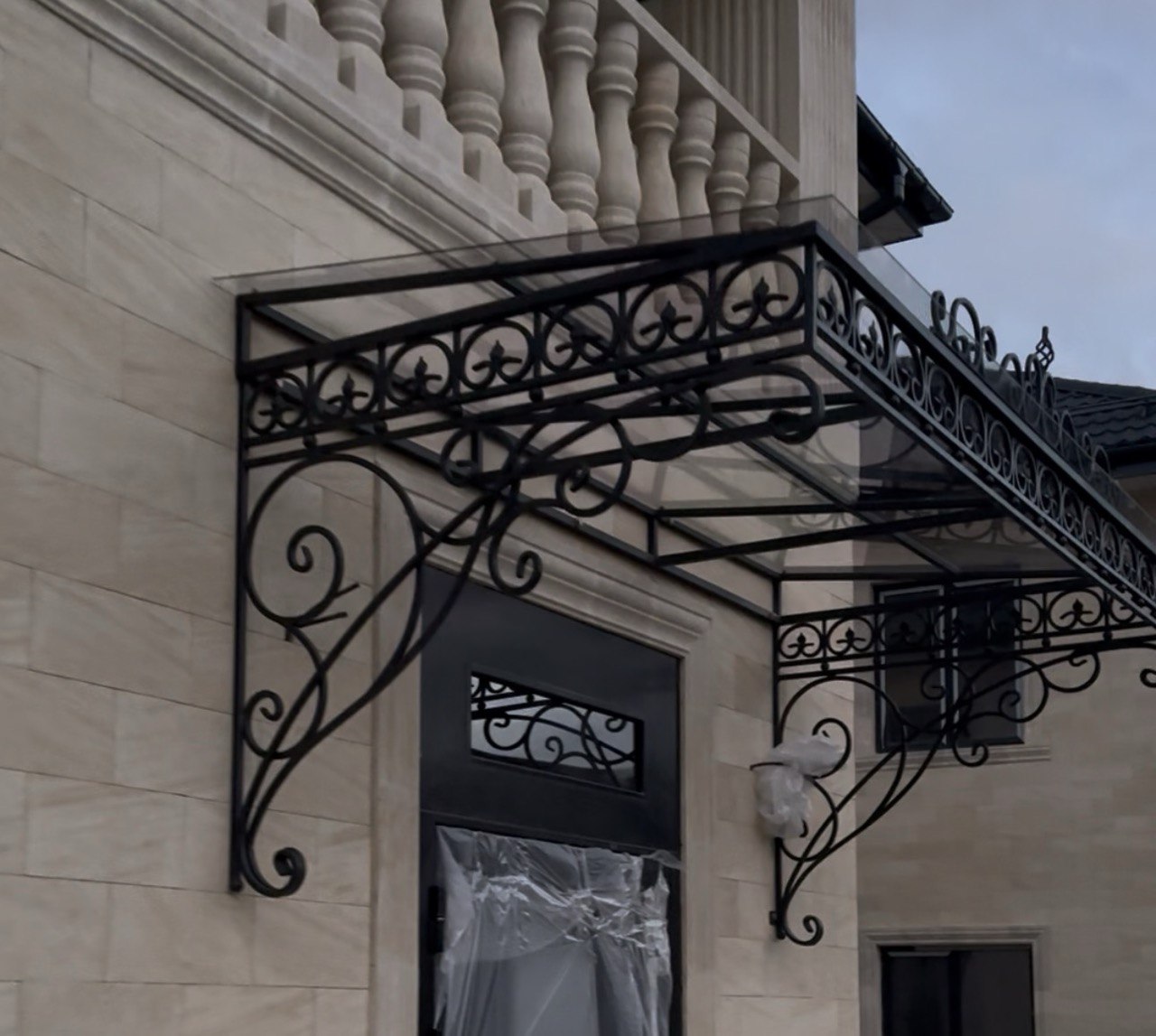 Кованый козырёк размер 2800мм х 1400мм из монолитного поликарбоната